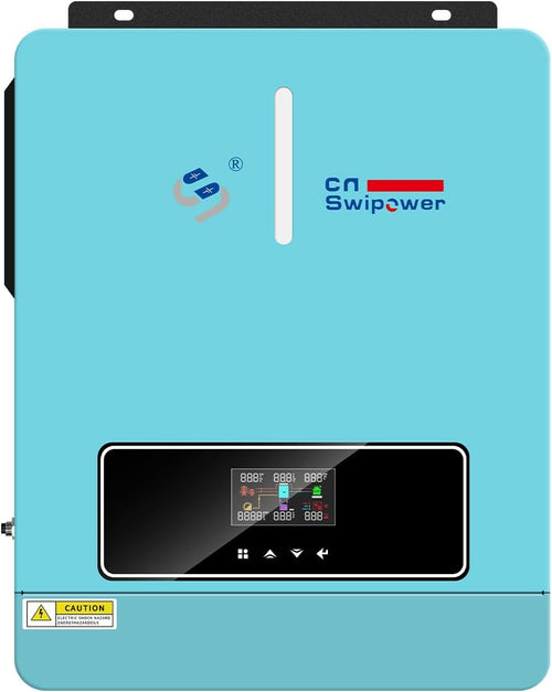 2 Inversor de potencia híbrido de onda sinusoidal pura de 3600 W con cargador solar MPPT de 120 A - CC 24 V (rango 20 V - 30 V) a CA 110 V 60 Hz, para respaldo doméstico, RV fuera de la red, sistemas