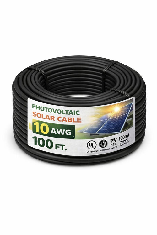 Cable Fotovoltaico de Cobre Estañado 10 AWG | 100 Pies | Negro | Resistente UV